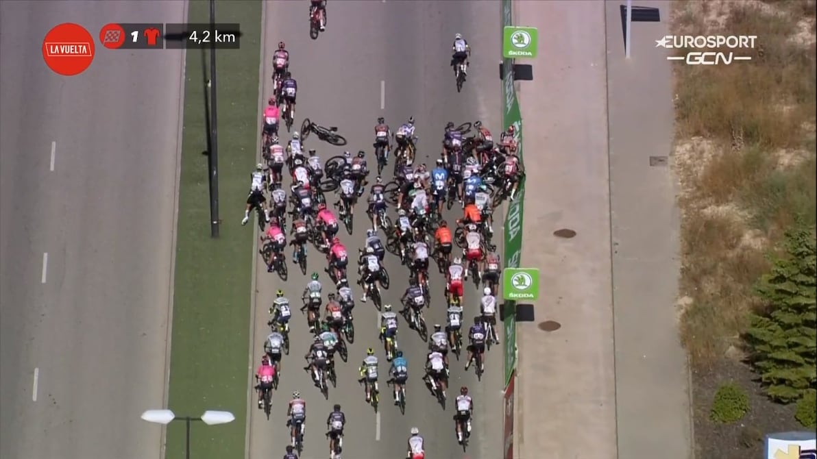 La Vuelta a España llegó a Burgos Gamonal, pero no lo hizo sin novedades. Una caída a 4,2 kilómetros de la meta de la segunda etapa cortó el pelotón y dejó damnificado al equipo alemán Bora-Hansgrohe, con tres ciclistas golpeados, aunque según el reporte médico sin consecuencias graves.