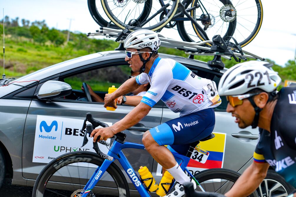 El ciclista ecuatoriano lideraba el Movistar-Best PC en la ronda cafetera de 10 etapas que se cumplirá hasta el domingo en Tunja, en el departamento de Boyacá.