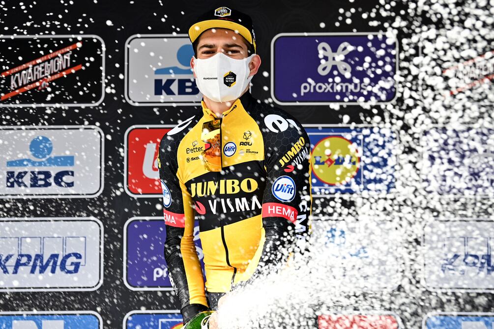 El belga Wout Van Aert (Jumbo-Visma) ganó este domingo en Bélgica la clásica Gent-Wevelgem, superando al esprint a los italianos Giacomo Nizzolo y Matteo Trentin. La prueba no contó con dos equipos, ausentes por contagios de coronavirus entre sus nóminas.