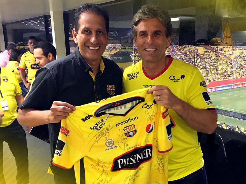 El presentador de noticias de CNN en Español, Carlos Montero, se puso la camiseta de Barcelona Sporting Club anoche previo al partido ante Botafogo.