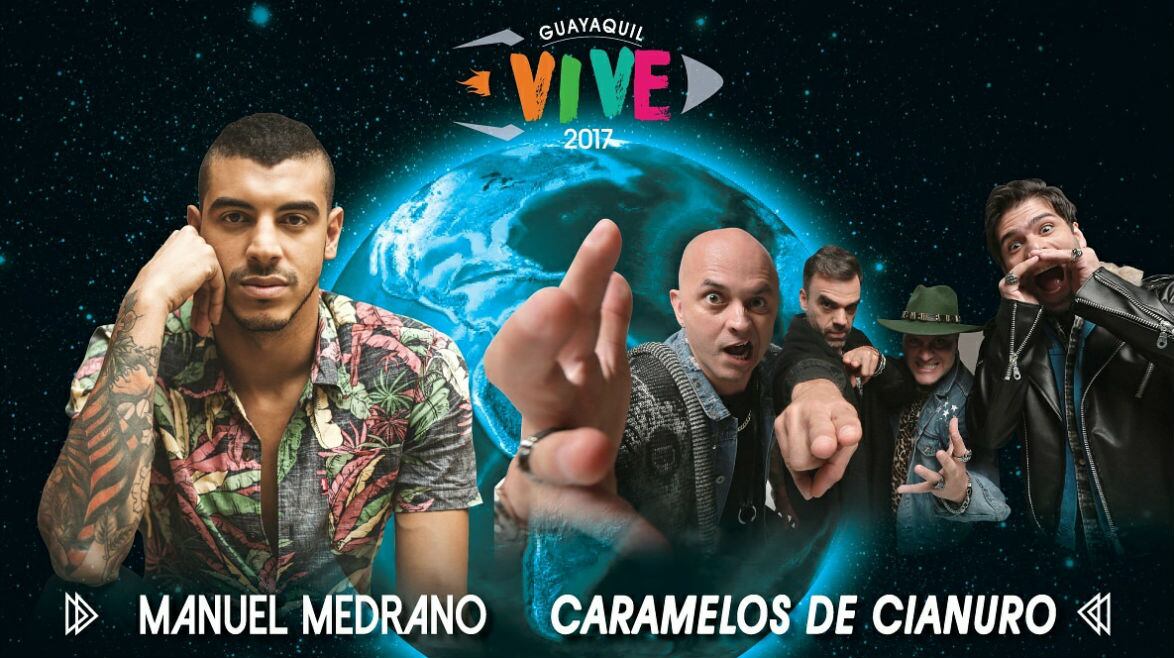 Caramelos de Cianuro, Manuel Medrano y Lionel Ferro serán algunos de los artistas internacionales que se presentarán en la feria Guayaquil Vive 2017 Fair & Fest, que se realizará el próximo 22 de junio, de 16:00 a 24:00, en el Palacio de Cristal (Malecón y Olmedo).
