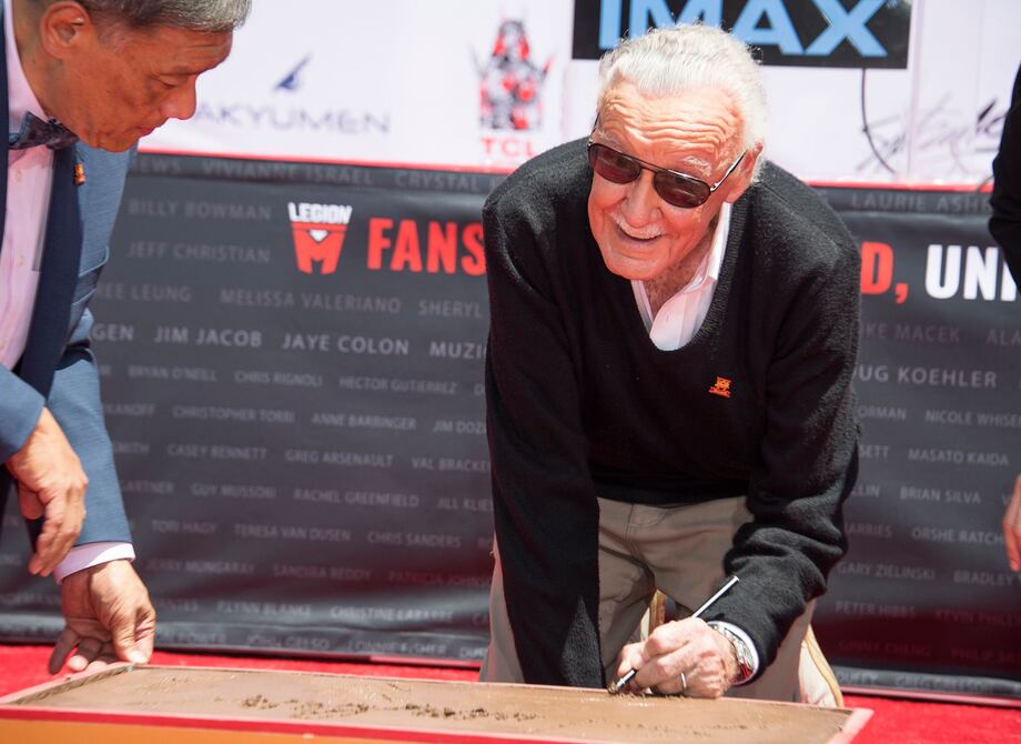 Stan Lee, cuyos superhéroes de Marvel forman parte de la cultura popular desde hace medio siglo, fue homenajeado este martes al plasmar las huellas de sus manos y pies en el cemento del Teatro Chino de Hollywood.