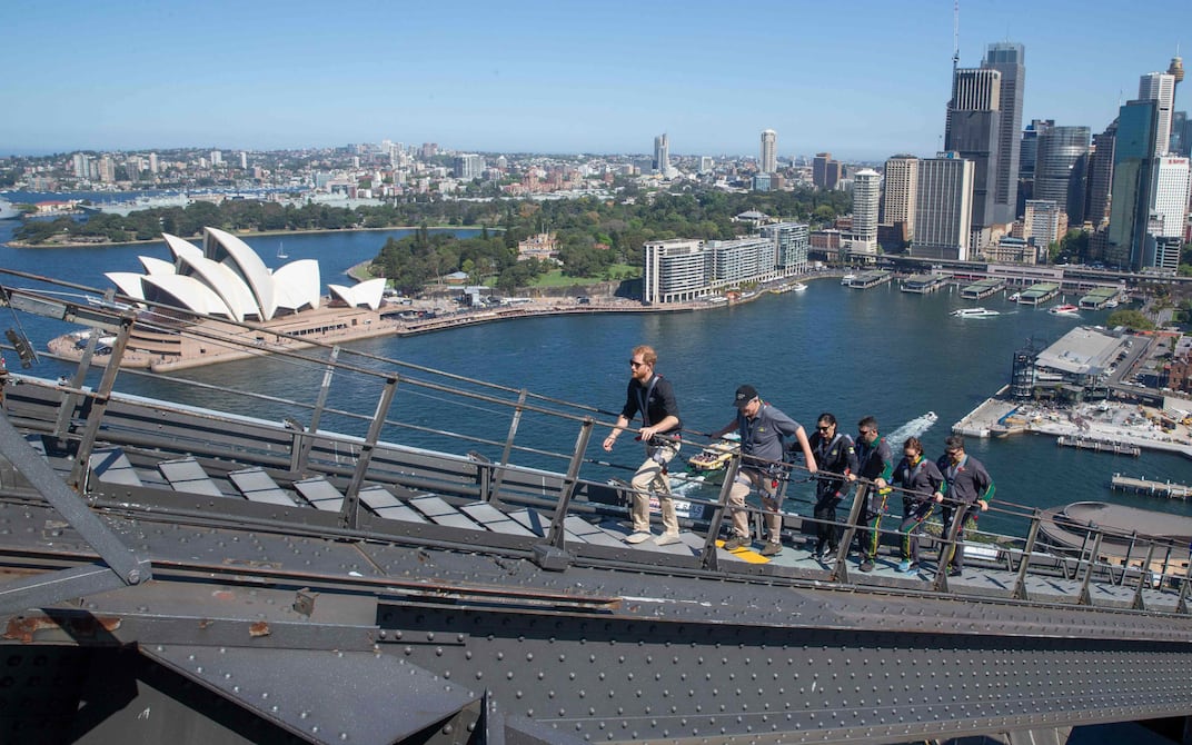 El príncipe británico Enrique escaló este viernes el puente de la bahía de Australia, acompañado por el primer ministro Scott Morrison, durante una gira real que rompió con la rutina formal de ese tipo de eventos al involucrar a la pareja real en un abrazo grupal en la playa Bondi.