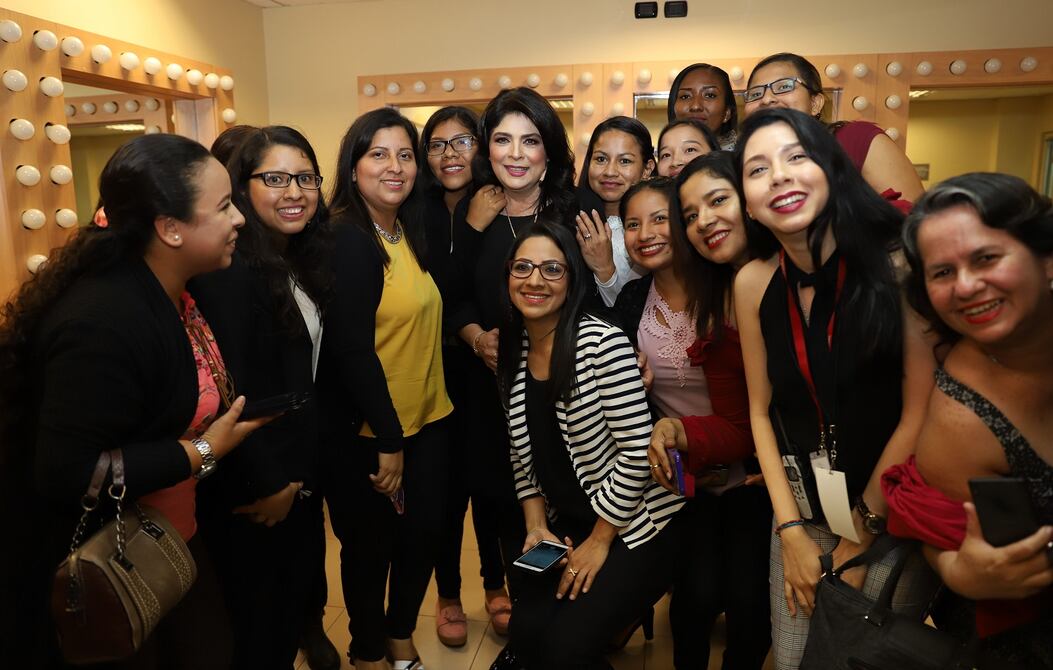 Se agruparon una a una en los camerinos del Teatro Sánchez Aguilar, en la vía a Samborondón. Iban cargadas de bolsas de regalos, ramos de flores, tortas temáticas, pósters, fotografías gigantes y con celulares y cámaras listas para inmortalizar el momento. La actriz mexicana Victoria Ruffo cuenta con un infaltable grupo de seguidoras, en varias partes del mundo, que se autodenominan las ruffonáticas. Y que pudimos ver en acción anoche, cuando se estrenó la obra Las Arpías, en la que Ruffo, compartió escenario con estrellas de la actuación mexicana como Jacqueline Andere, Ana Patricia Rojo, Maribel Guardia y Alejandra Lazcano.