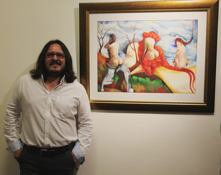 Abdón Segovia, artista guayaquileño que ganó el primer lugar del Salón Nacional de la Acuarela, con su obra titulada Naturaleza sexy. Cortesía de la Casa de la Cultura, Núcleo del Guayas Foto: redaccion