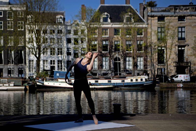 Seis bailarines del Ballet Nacional Holandés salieron a las calles de Ámsterdam esta semana para interpretar unas coreografías inspiradas en la cuarentena por el coronavirus.