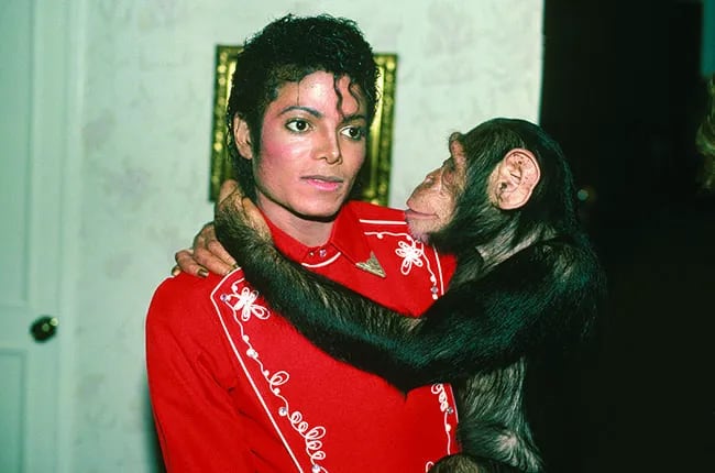 Jackson rescató a Bubbles en la década de 1980 de un centro de investigación en Texas. Durante años, el chimpancé acompañó al artista en distintos momentos públicos y privados. Viajó con él durante sus giras, asistió a la boda de su abogado John Branca e incluso compartió una taza de té con Jackson durante una visita a funcionarios del gobierno en Japón en 1987.