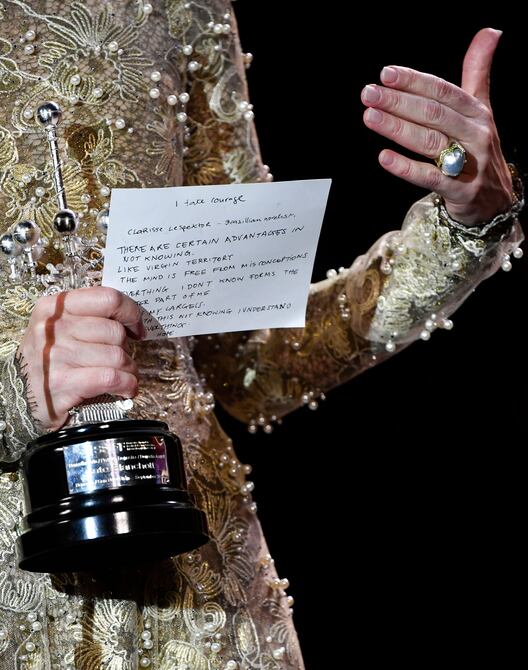 El cineasta mexicano Alfonso Cuarón, a cuyas órdenes acaba de trabajar Blanchett en la miniserie Disclaimer, ha sido el encargado de entregar la estatuilla a la actriz, de quien elogió su rigor y virtuosismo, mientras que el actor George Clooney ha querido felicitarle a través de un video.