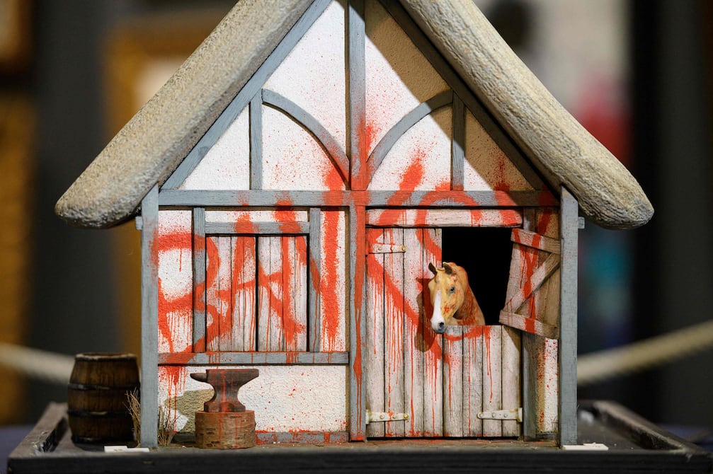 La obra El establo de Merrivale, compuesta por un establo cubierto de grafiti, un curioso caballo y la efigie de una niña, del artista Banksy, fue vendida en la casa de subastas Anderson y Garland por 800.000 libras, el equivalente a 891.480 dólares.
