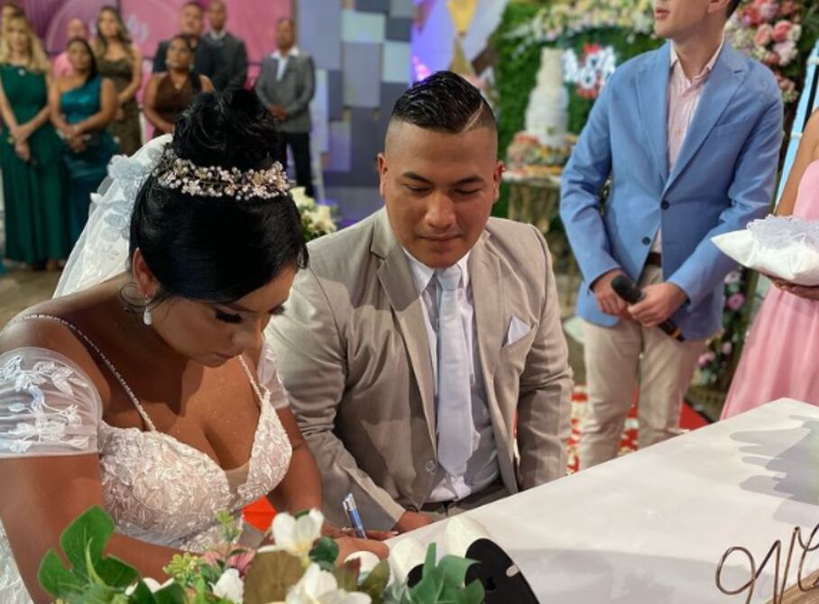 La ceremonia del transportista con su pareja, Carolina Acosta, fue desarrollada por el matinal 'De casa en casa' (TC Televisión), que la transmitió en vivo.