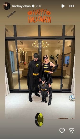 Hablando de Batman, la actriz Lindsay Lohan y su pequeña familia de tres se inspiró en el Caballero de la Noche para pedir caramelos esta noche. Su esposo Bader Shammas salió como el superhéroe alado, ella, como Batichica y su pequeño hijo Luai, como un mini Batman. (E)