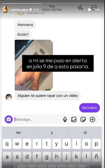 Ladera también compartió en sus historias que desde el 9 de julio había recibido una advertencia sobre la posible filtración. El 13 de ese mismo mes decidió hablar con su familia y relató que preparó a su madre para lo que se venía: “Ese día senté a mi mamá y le conté lo que estaba pasando, a ella, a mi familia y a Hugo”.