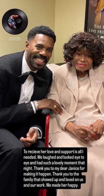 La madre del fallecido cantante fue vista junto con Colman Domingo, actor encargado de interpretar a Joe Jackson, su difunto esposo, en la producción cinematográfica. La imagen fue compartida por el propio artista en sus historias de Instagram este martes 22 de abril.