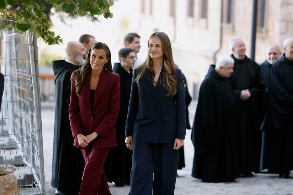 Visita Navarra con los Reyes y coordina su look con Letizia, luciendo un traje de raya diplomática.