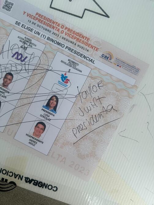 La creatividad no se queda atrás cuando se trata de política, y es que, de entre los votantes en nulo de estas elecciones 2023, varios han decidido compartir (en forma de chiste) lo que hicieron con sus papeletas. Si bien lo habitual con los votos nulos es simplemente dejar el papel en blanco o anular el voto al cruzar una gran raya, surgieron otras formas de decirles ‘no’ a Luisa González y a Daniel Noboa.