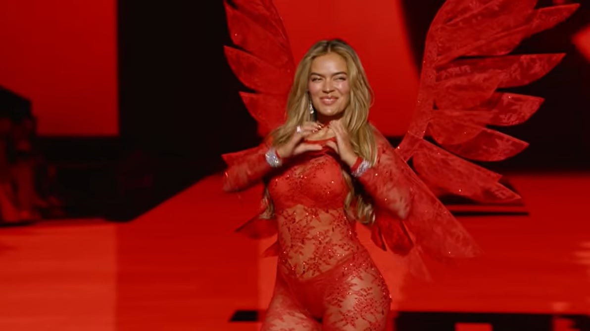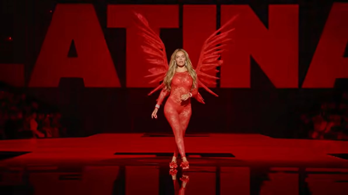 Alrededor de ella fueron deslizándose las modelos con conjuntos escarlata brillantes y, por supuesto, complementadas con las infaltables alas rubí. También la acompañó un músico que tocó el bongo en vivo al ritmo de la melodía mencionada.