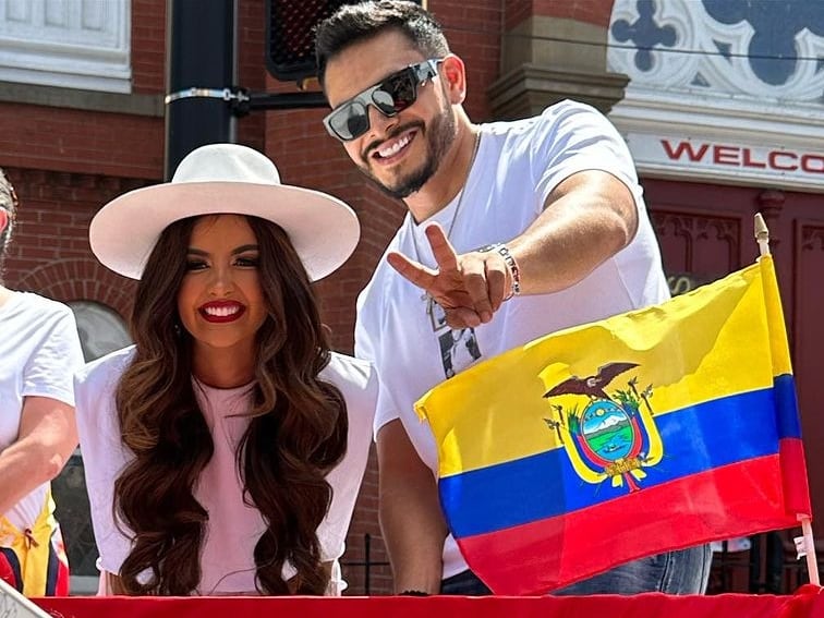 ¡El verídico Ecuador en la casa! Con un atuendo 100 % ecuatoriano y representando el talento y belleza del país, Dayanara ha llegado a Nueva Jersey acompañada de Jonathan Estrada, listos para ser los padrinos del festival que anualmente acopla a un amplio grupo de la comunidad ecuatoriana que reside en dicho estado americano.