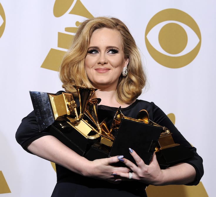 En febrero de 2012, la artista obtuvo siete premios Grammy, entre ellos álbum del año, mejor álbum pop vocal, canción del año por Rolling in the Deep y mejor interpretación pop solista por Someone Like You. (E)
