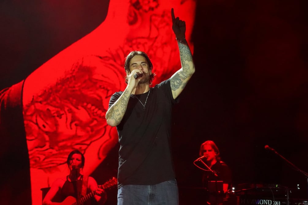 Vestido con camiseta negra y jean, el cantante español apareció entre los aplausos de fanáticos que aguardaban su regreso a Ecuador. La noche estuvo marcada por una llovizna constante que cayó durante todo el espectáculo, pero que no impidió que el público cantara a todo pulmón y se moviera al ritmo de cada canción.
