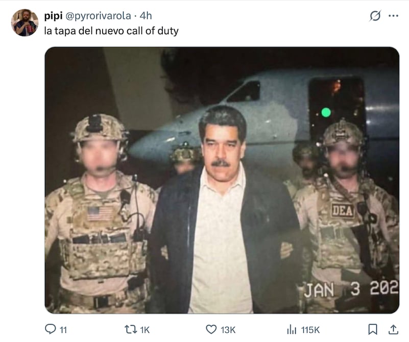 Sin duda los internautas no pierden el tiempo y reflejan con o sin filtro lo que opinan sobre este hecho. En plataformas como Instagram y X (Twitter) se viralizaron desde referencias de Call of Duty hasta chistes sobre la reacción de las fuerzas armadas de Venezuela, así como una parodia de declaraciones del mandatario sucesor de Hugo Chávez.