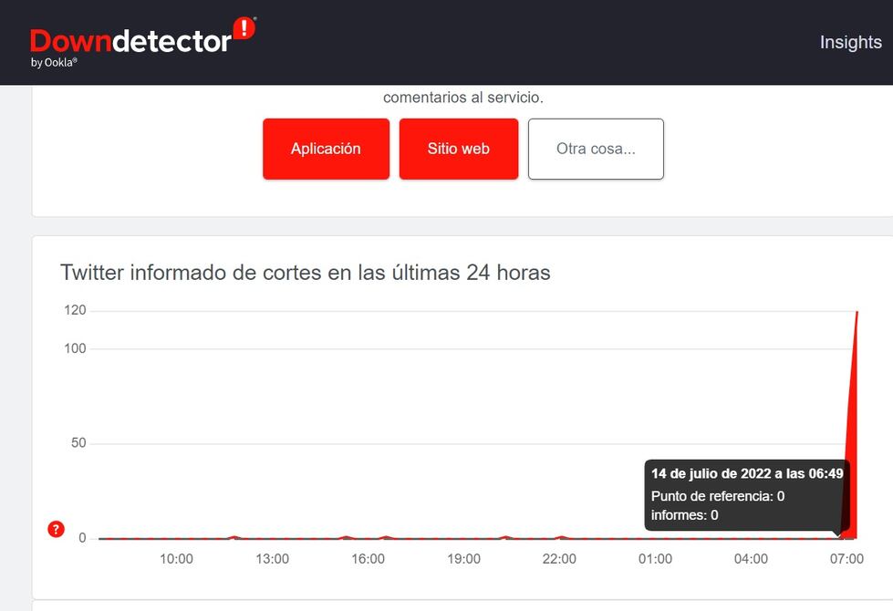 En el gráfico de caída Downdetector muestra problemas desde alrededor de la 06:49 de Ecuador continental.