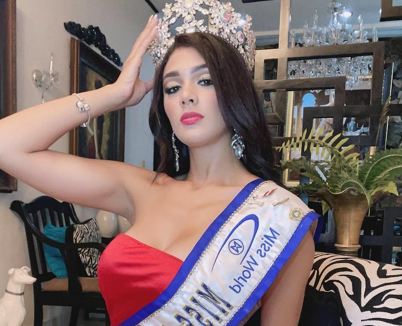 Con un vestido largo en tono amarillo, una corona y una banda en la que se leía Miss Mundo Honduras llegó Grisell Romero a la casa de los chicos en El poder del amor este martes.