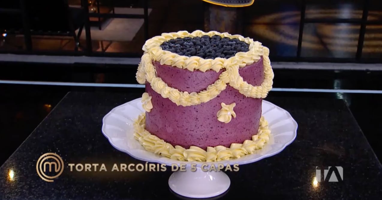 Ellos tuvieron que crear una torta arcoíris de cinco capas de diferentes colores en 75 minutos.