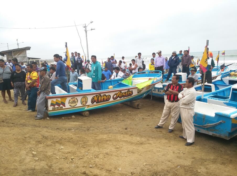 “El pescador unido no será vencido” era el grito que se repetía desde las 06:00, a orillas del mar, en Puerto Engabao, comuna ubicada a 15 minutos del cantón Playas.