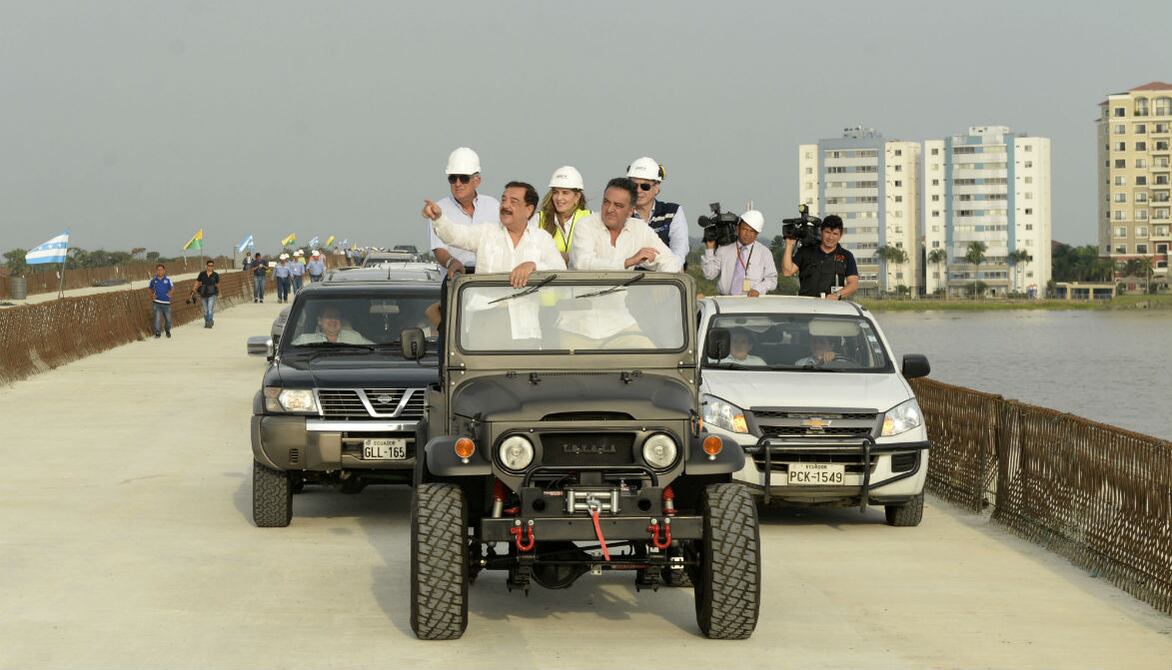 En un jeep conducido por el alcalde de Samborondón, José Yúnez, y en el que iban como pasajeros el alcalde de Guayaquil, Jaime Nebot; la vicealcaldesa Doménica Tabacchi, y directivos del Consorcio Enlace 780, se realizó el primer recorrido sobre el nuevo puente del río Daule.