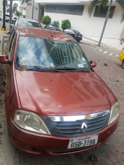 Una roca cayó ayer desde el cerro Santa Ana y afectó un automóvil que estaba estacionado en la zona de parqueos.