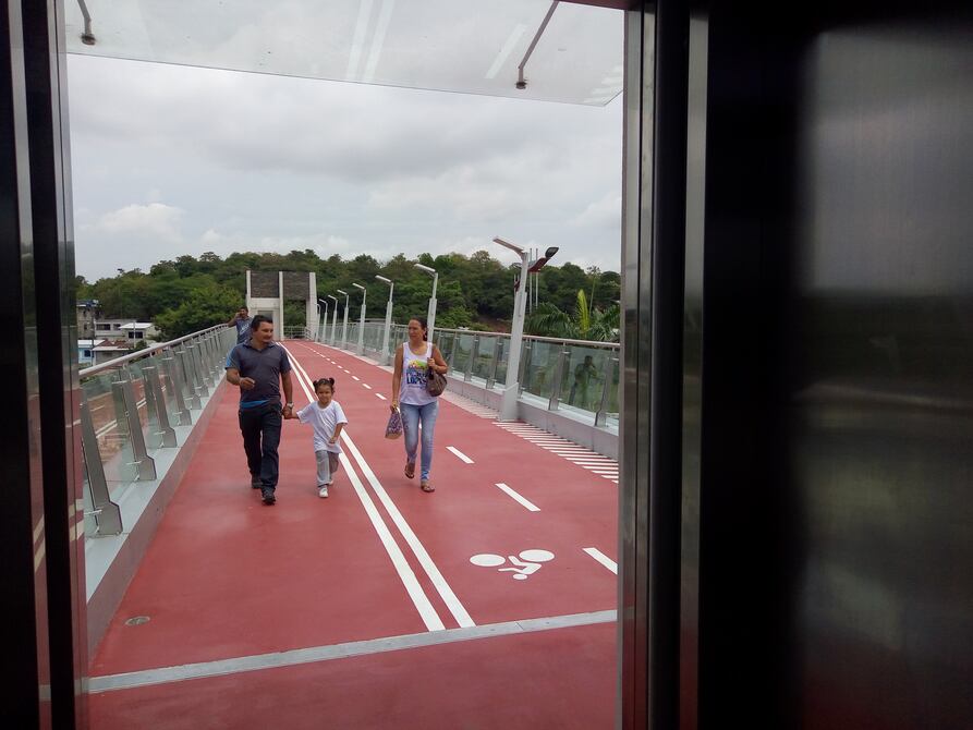 La mañana de este miércoles peatones cruzaron la av. Samborondón, justo a la altura del kilómetro 10, por el primer paso peatonal elevado que fue inaugurado por el alcalde José Yúnez Parra.