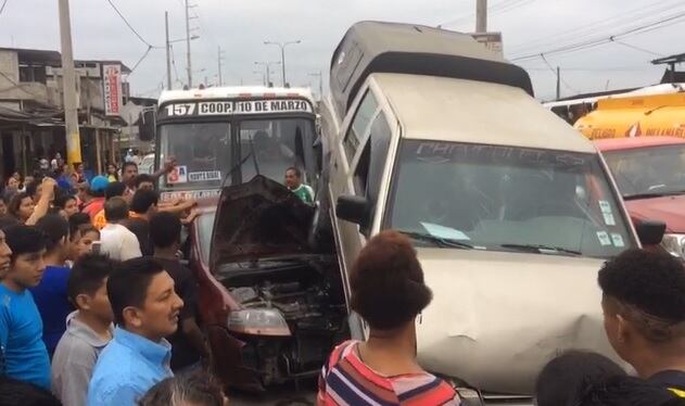 Testigos indicaron que el bus habría impactado a un auto que fue a dar debajo de una camioneta doble cabina, que a su vez dañó la parte trasera de otro carro que salió del sitio minutos después.