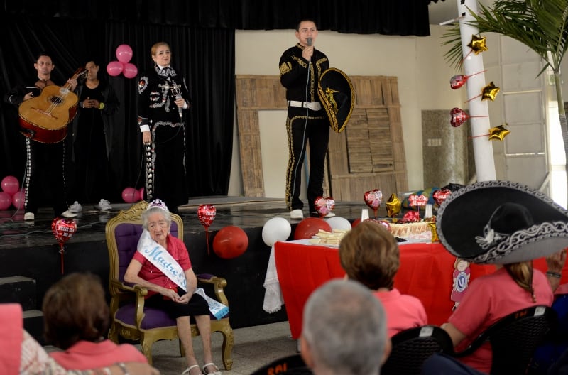 A ti te dedico mis versos, mi ser, mis victorias/ a ti mi respeto señora, señora, señora/ a ti mi guerrera invencible/ a ti luchadora incansable..., cantaba el vocalista del mariachi Bronco, en homenaje a las mamás residentes del Instituto de Neurociencias, en especial para honrar a Juana Checa, de 92 años, madre símbolo de la institución regentada por la Junta de Beneficencia de Guayaquil.