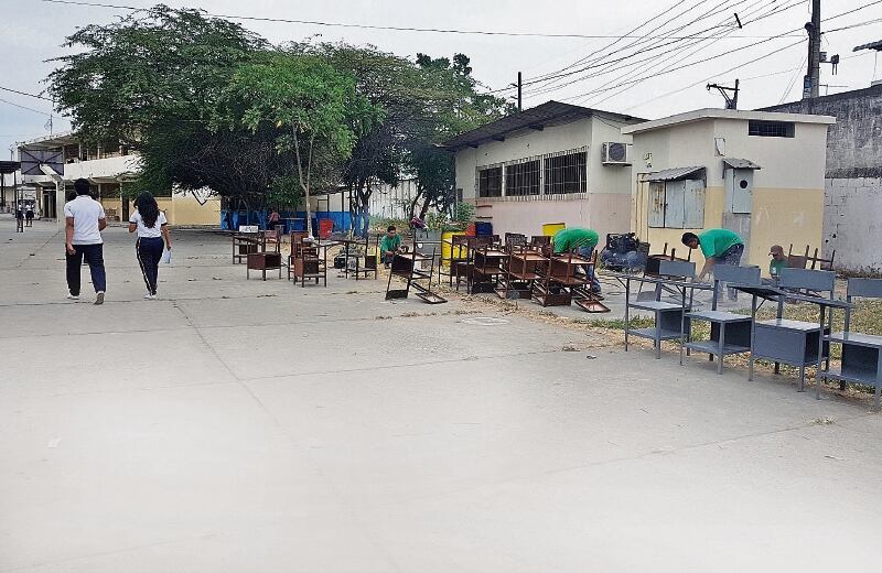 Cinco grifos están abiertos, pero de ninguno cae agua. Dos de los cuatro inodoros del baño de mujeres están sin tapa y todos ‘taponados’, dicen alumnas del colegio César Borja Lavayen, en el sur de Guayaquil.