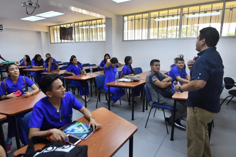 Jordan Sánchez, estudiante de Jurisprudencia de la Universidad de Guayaquil, salía cerca de las 13:00 de ayer de una de las aulas de esa facultad.