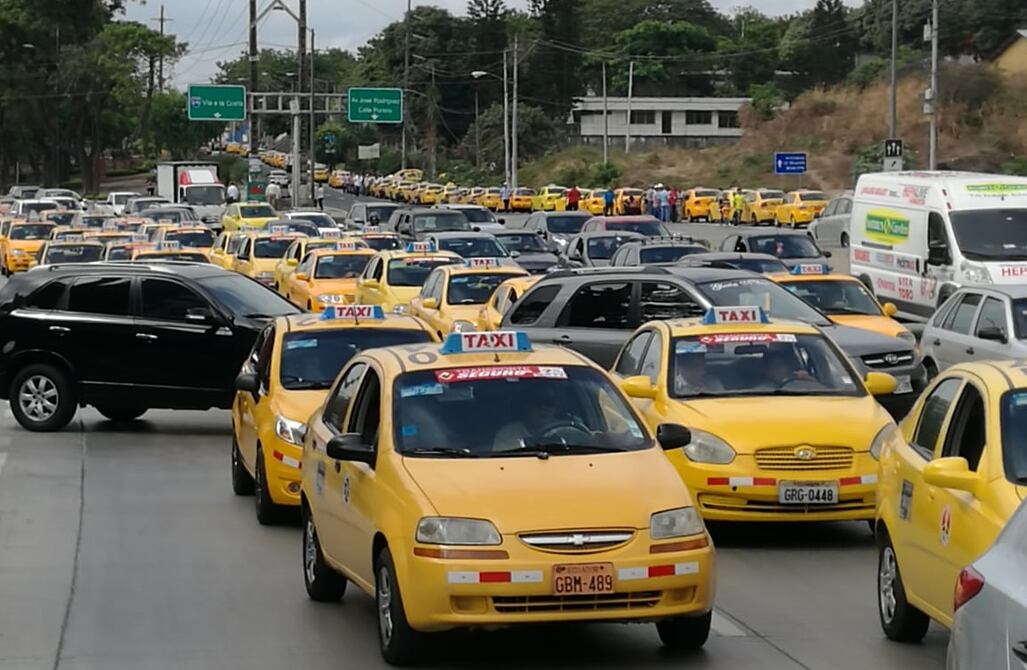 En distintos puntos del norte, sur y centro de Guayaquil decenas de taxistas legalizados se movilizan en sus vehículos hacia la ATM y la Gobernación del Guayas.