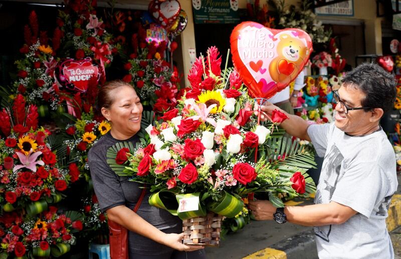 Álex Nunura y su esposa Norma Mantilla llegaron al mercado de flores, a las 09:30 del miércoles. En el local número 44, de Marjorie Sánchez, él compró a su cónyuge un arreglo floral con rosas rojas y un globo en forma de corazón con la frase: “Te quiero mucho”.