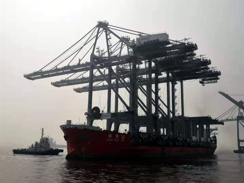 Armadas sobre un enorme buque y provenientes de China llegaron ayer a Posorja las primeras grúas que tendrá el Puerto de Aguas Profundas que será operado por DP World.
