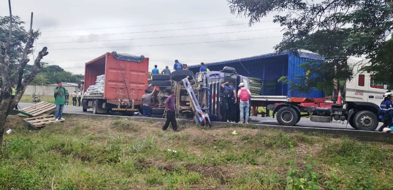 A las 14:00, en el sitio del accidente, los bomberos de Guayaquil terminaban de limpiar con agua la calzada.