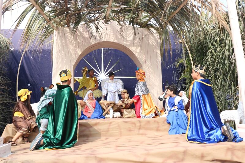 Marchando con mucho entusiasmo aparecieron en el escenario los estudiantes que vestían atuendos de soldados como parte del inicio del pregón de la pastorela del Instituto Particular Abdón Calderón (IPAC), el pasado viernes 20 de diciembre, luego se unieron los demás personajes, más de 500 alumnos.