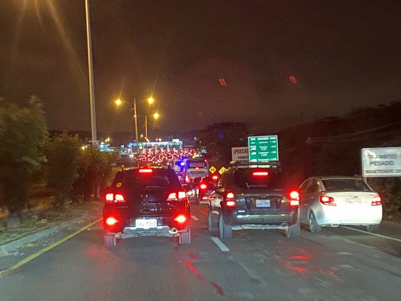La carretera Salinas-Guayaquil registró horas de caos total durante la tarde y noche del domingo pasado. Aquello se evidenció desde Progreso (km 63), en la bifurcación que une el tránsito que viene de Playas y Salinas. Allí, cientos de autos formaron largas colas que llegaron a paso lento hasta la estación del peaje, en el km 25.