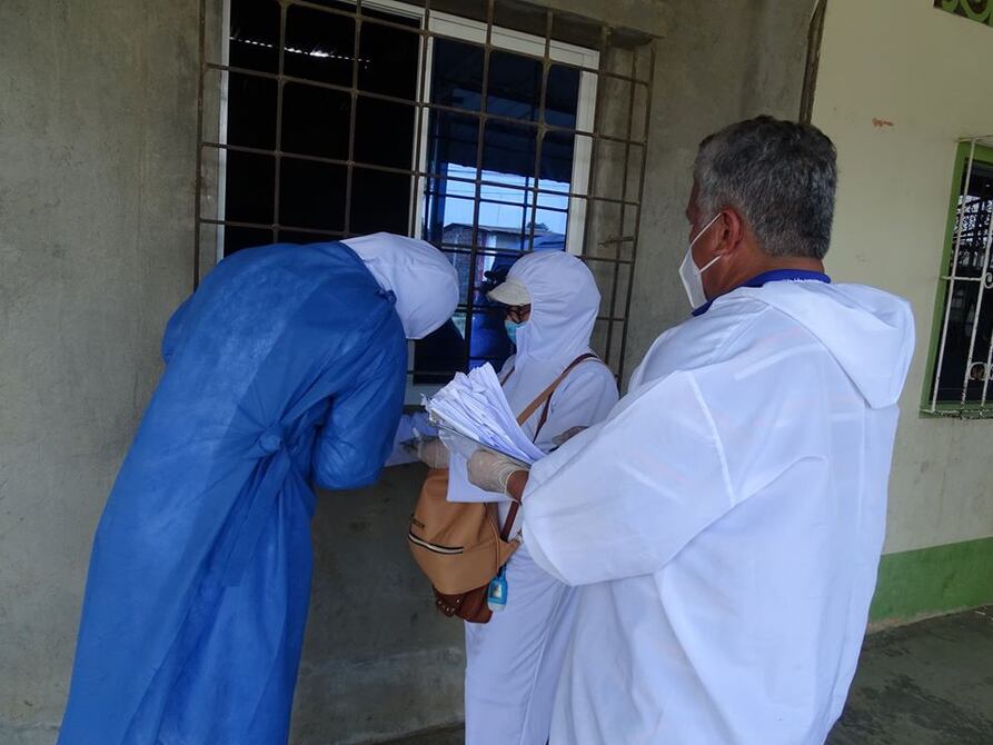La toma de temperatura y desinfección del calzado fueron parte de los protocolos sanitarios implementados en la sede municipal de Lomas de Sargentillo, este martes 26. Esta localidad de la provincia del Guayas reanudó actividades comerciales con el paso de semáforo rojo a amarilllo.