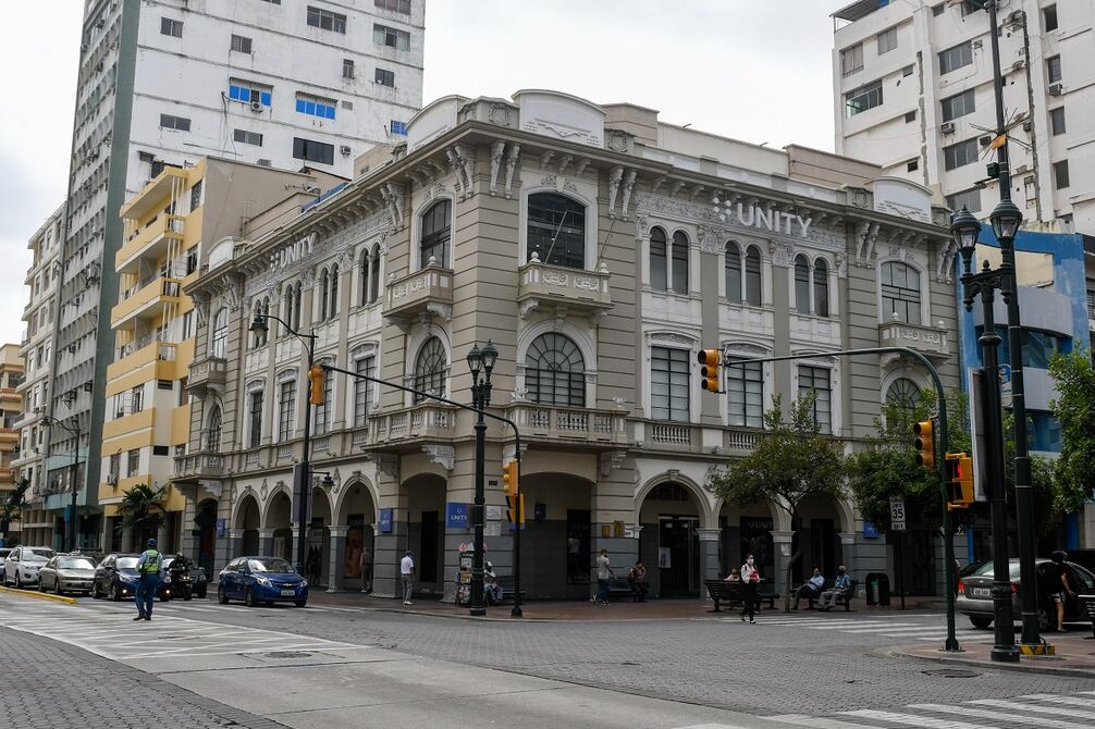 Marco Martínez lleva 30 años en la esquina de la avenida 9 de Octubre y Boyacá y ha sido testigo de los diferentes negocios que ha acogido el edificio patrimonial en el que actualmente funciona la tienda Unity, de múltiples productos.