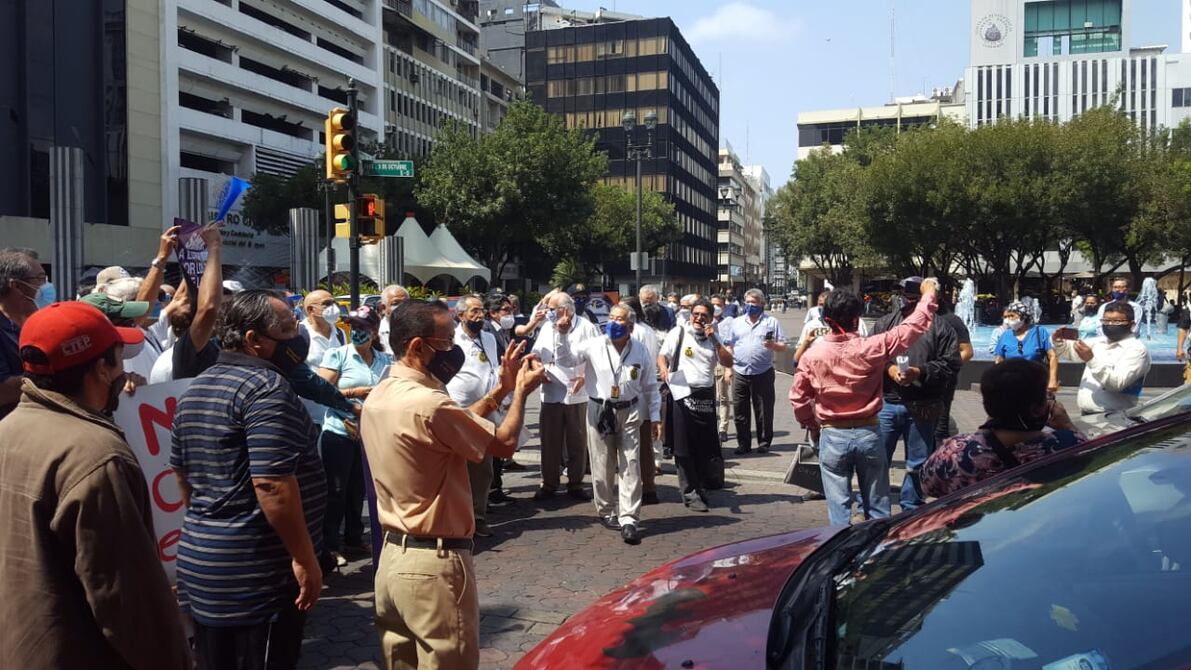 En la plaza Rocafuerte, frente a la estatua del patrón de la institución, decidieron reunirse para protestar.
