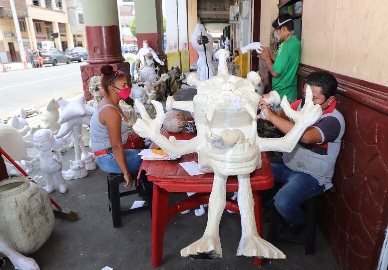 En la calle 6 de Marzo, centro de Guayaquil, los artesanos que elaboran monigotes dicen que afrontan dificultades para conseguir papel periódico, materia prima de sus creaciones.