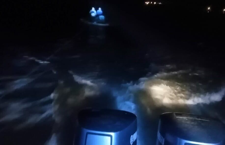 Integrantes del Retén Naval de Posorja rescataron a dos personas que navegaban a la deriva al sur de la boya 14, en una zona cercana al estero El Morro, a las 23:30 de este lunes 11.