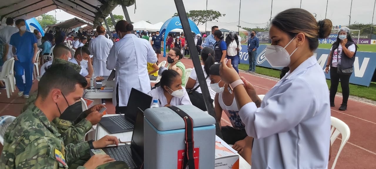 En el estadio Chucho Benítez del Parque Samanes, en el norte de Guayaquil, arrancó la jornada de vacunación contra el COVID-19 para transportistas y sus familiares.