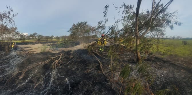 Durante la jornada de este domingo, 29 de septiembre, el Cuerpo de Bomberos de Guayaquil atendió un incendio forestal registrado en la av. 25 de Julio y Estela Maris, en el sur de Guayaquil.