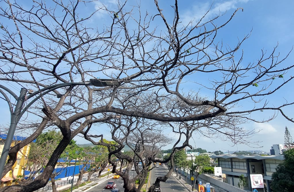 Una hilera de árboles con ramas secas se observa en la calle Enrique Ortega Moreira e Ilanes, en Urdesa central. Allí, según moradores, estas especies de más de dos metros de altura hace poco más de cinco años mantenían verdes sus hojas.
