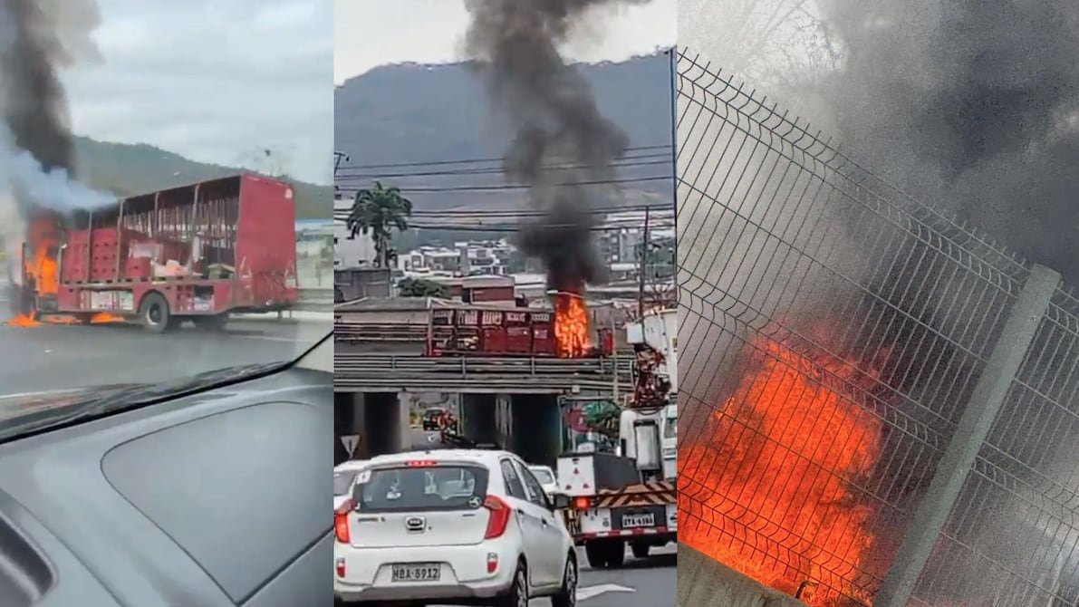 El tránsito vehicular se ha visto congestionado en la vía Perimetral, a la altura del ingreso a Ceibos norte, debido a la alarma de incendio de un camión que transportaba bebidas.
